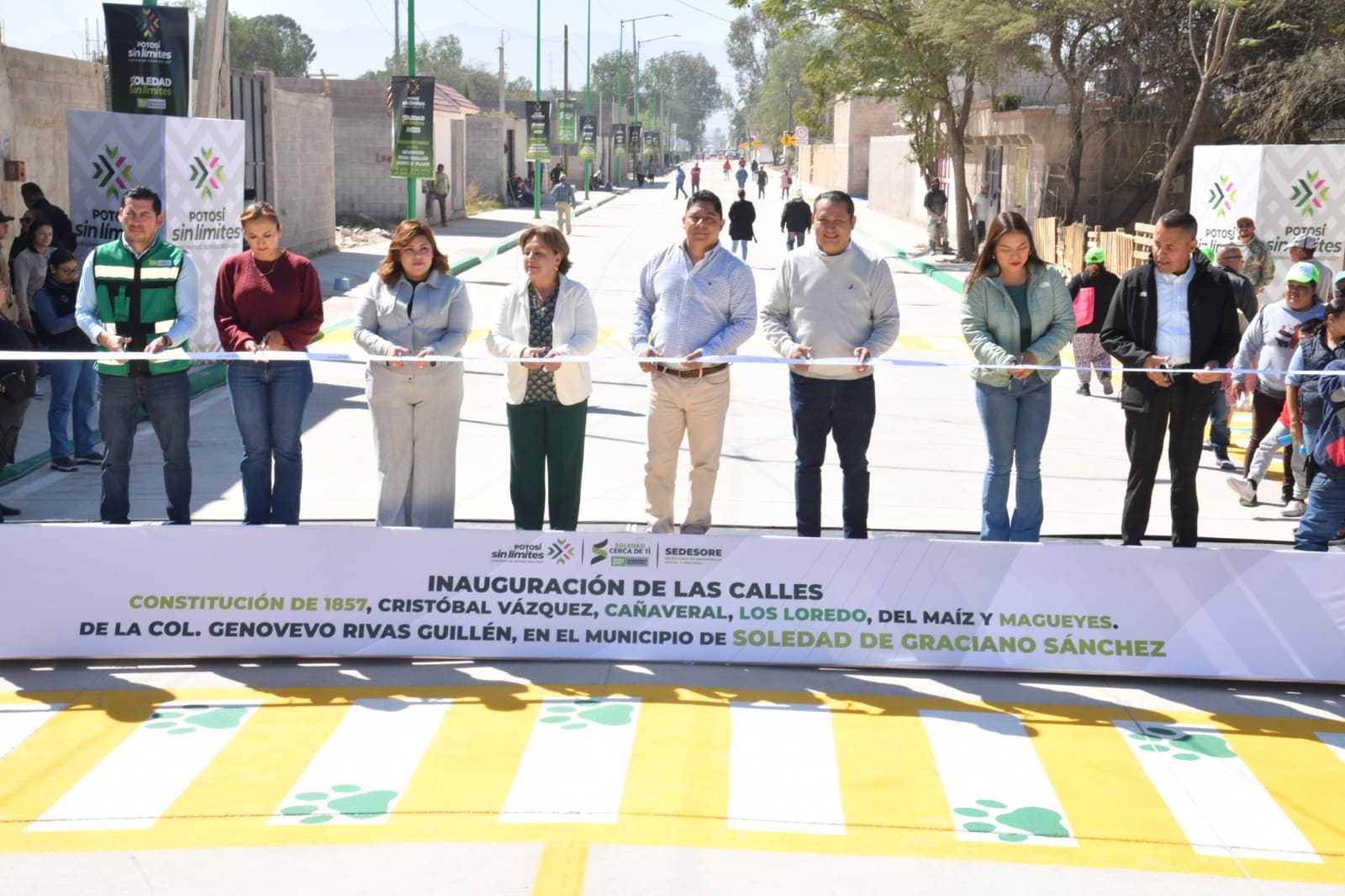 En un multitudinario evento, donde el sentir de gratitud y emoción de cientos de habitantes de Soledad de Graciano Sánchez, el Gobernador, Ricardo Gallardo Cardona, con el respaldo del Alcalde, Juan Manuel Navarro Muñiz, inauguró la modernización de las calles Constitución de 1857, Cristóbal Vázquez, Cañaveral, Los Loredo, Del Maíz y Magueyes en la colonia Genovevo Rivas Guillén Norte Quinto Plano, una obra realizada con los esfuerzos del Ayuntamiento y del Gobierno Estatal, representando una inversión superior a los 58 millones de pesos.