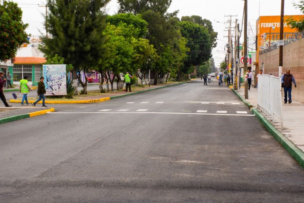 La Avenida de Los Pinos luce diferente, además de un nuevo pavimento, se embelleció el espacio por completo, se realizaron obras complementarias para hacer una vialidad funcional, pues al ser una avenida muy transitada había daños que requirieron de una intervención a fondo, además de respetar los topes existentes, se realizaron trabajos de pintura en guarniciones, pasos peatonales y señalética.
