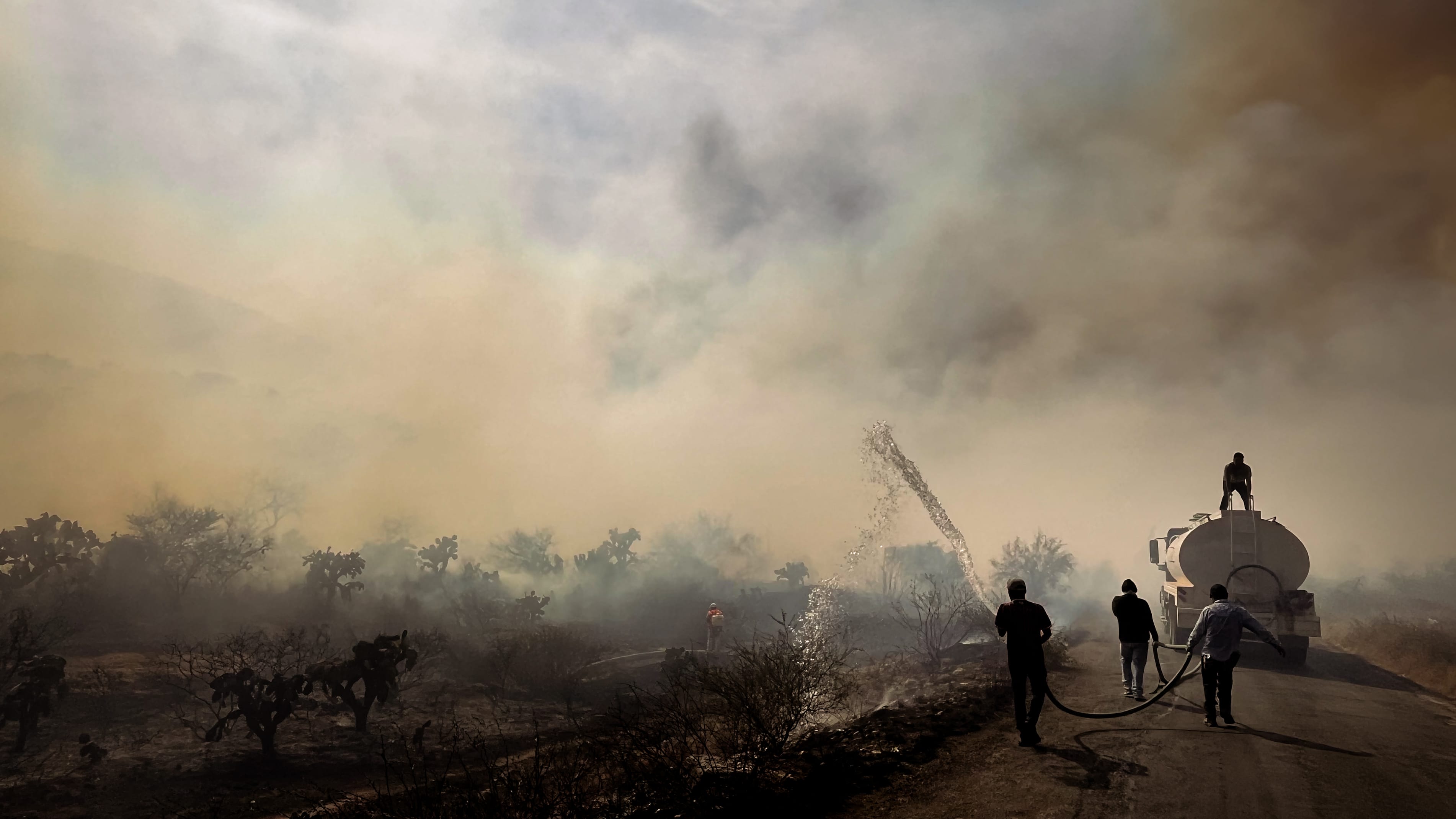 Brigadistas de los tres niveles de gobierno, junto con voluntarios, respondieron de manera inmediata al incendio de pastizal y matorral registrado en la comunidad de Derramaderos. El siniestro movilizó a elementos de la Comisión Nacional Forestal (Conafor), la Coordinación Estatal de Protección Civil (CEPC) y la Comisión Nacional de Áreas Naturales Protegidas, quienes trabajaron en coordinación con autoridades municipales para contener y sofocar las llamas.