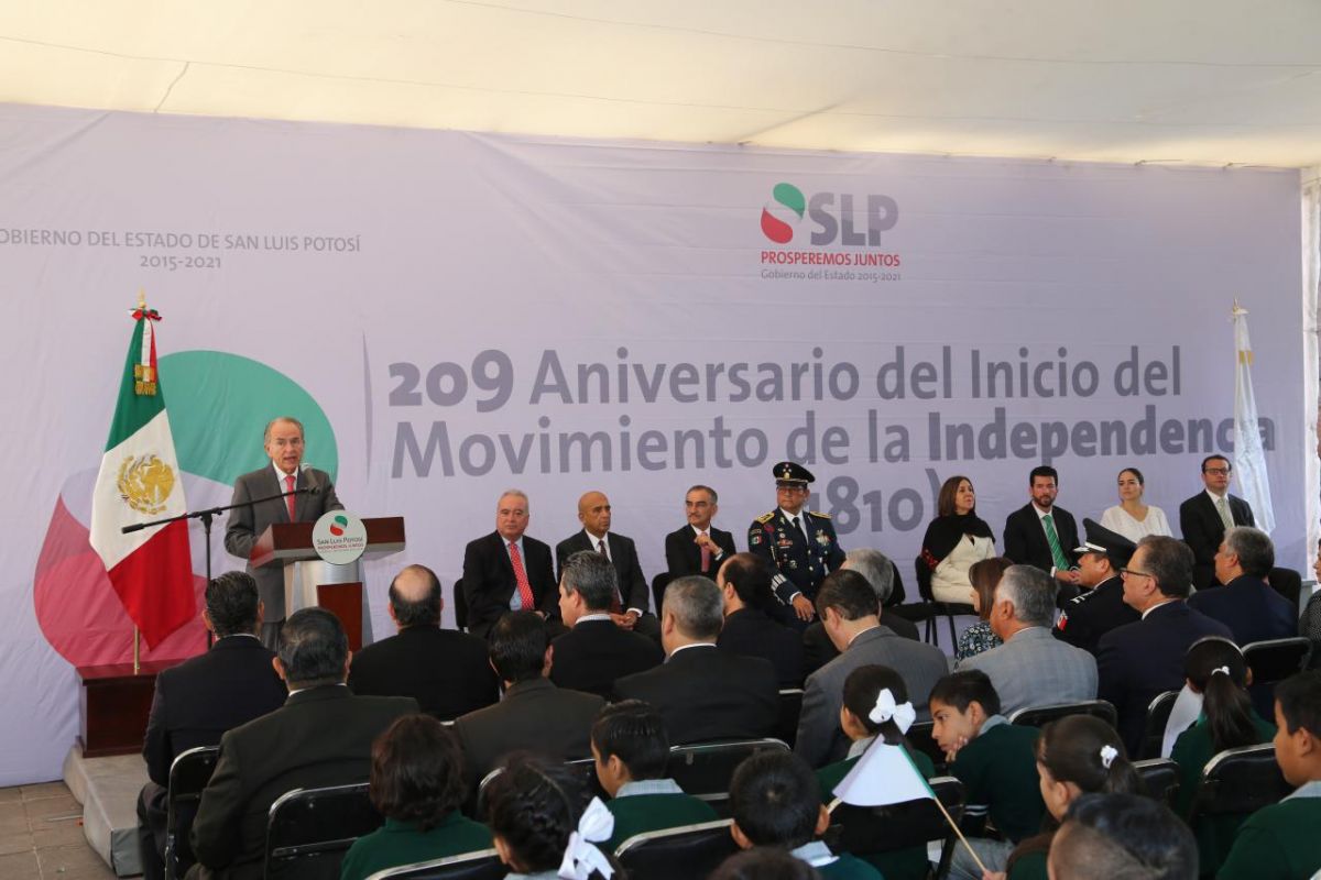 Tras depositar una ofrenda floral en el Monumento a la Independencia con motivo de la conmemoración de su 209 Aniversario, el Gobernador del Estado, Juan Manuel Carreras López, destacó el aporte de las mujeres y hombres del México Insurgente, por lo que convocó a luchar por un México justo, pacífico, próspero, basado siempre en libertades y en la concordia”.