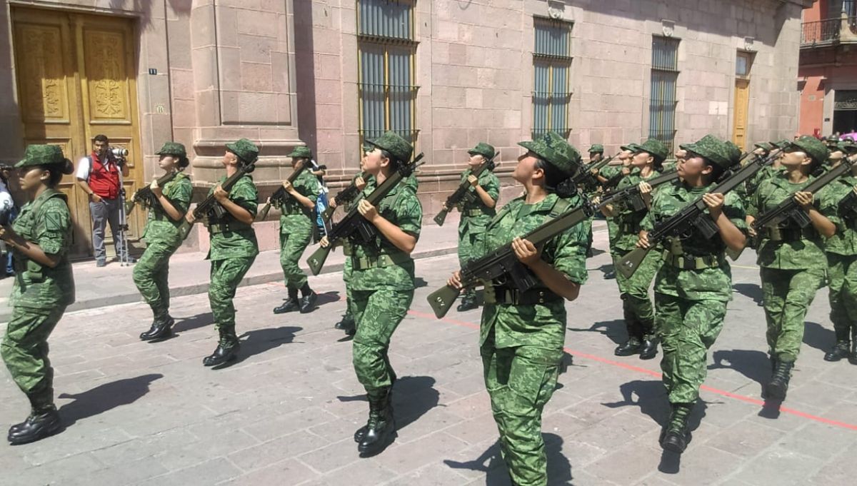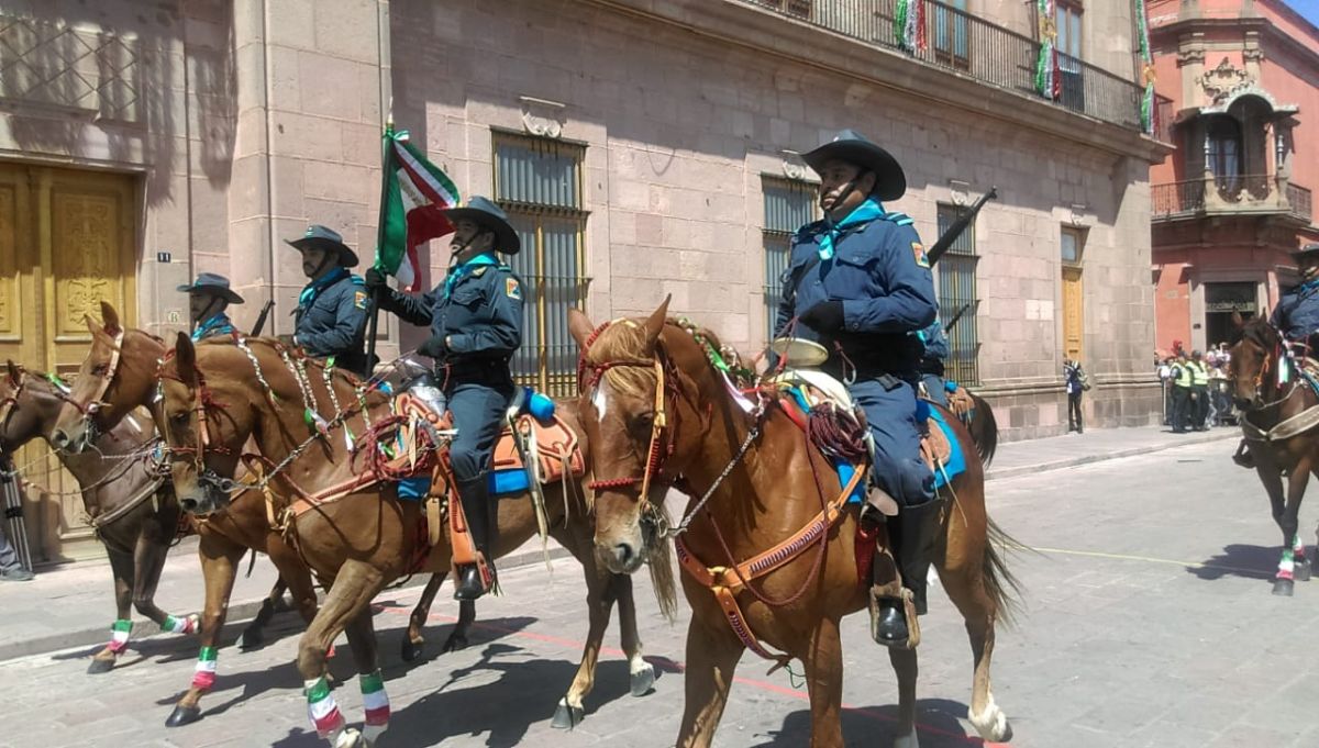 Posteriormente, se dirigió a Palacio de Gobierno en donde a su paso se acercó a saludar a las familias que se encontraban en los espacios dispuestos para presenciar el desfile cívico militar en el que participaron Motociclistas; el Colegio de Estudios Científicos Tecnológicos del Estado;  el Sistema Educativo Estatal Regular (SEER); la Secretaría de Educación de Gobierno del Estado (SEGE), el Colegio Angloamericano; la Cruz Roja Mexicana; el Consejo Estatal de Protección Civil (CEPC); la Dirección General de Seguridad Pública del Estado (DGSPE); Policía Metropolitana; Dirección General de Seguridad Pública Municipal (DGSPM); Dirección de Protección Civil Municipal; Cuerpo de Bomberos Voluntarios; Pentatlón Deportivo Universitario; Policía Federal (PF); Agrupamiento Militar; 40° Batallón de Infantería; 12ª Zona Militar; Hospital Militar Regional; 8° C.C.R.D.; Agrupamiento Montado; Rurales; Seguridad Pública Municipal; Asociación Local de Charros.