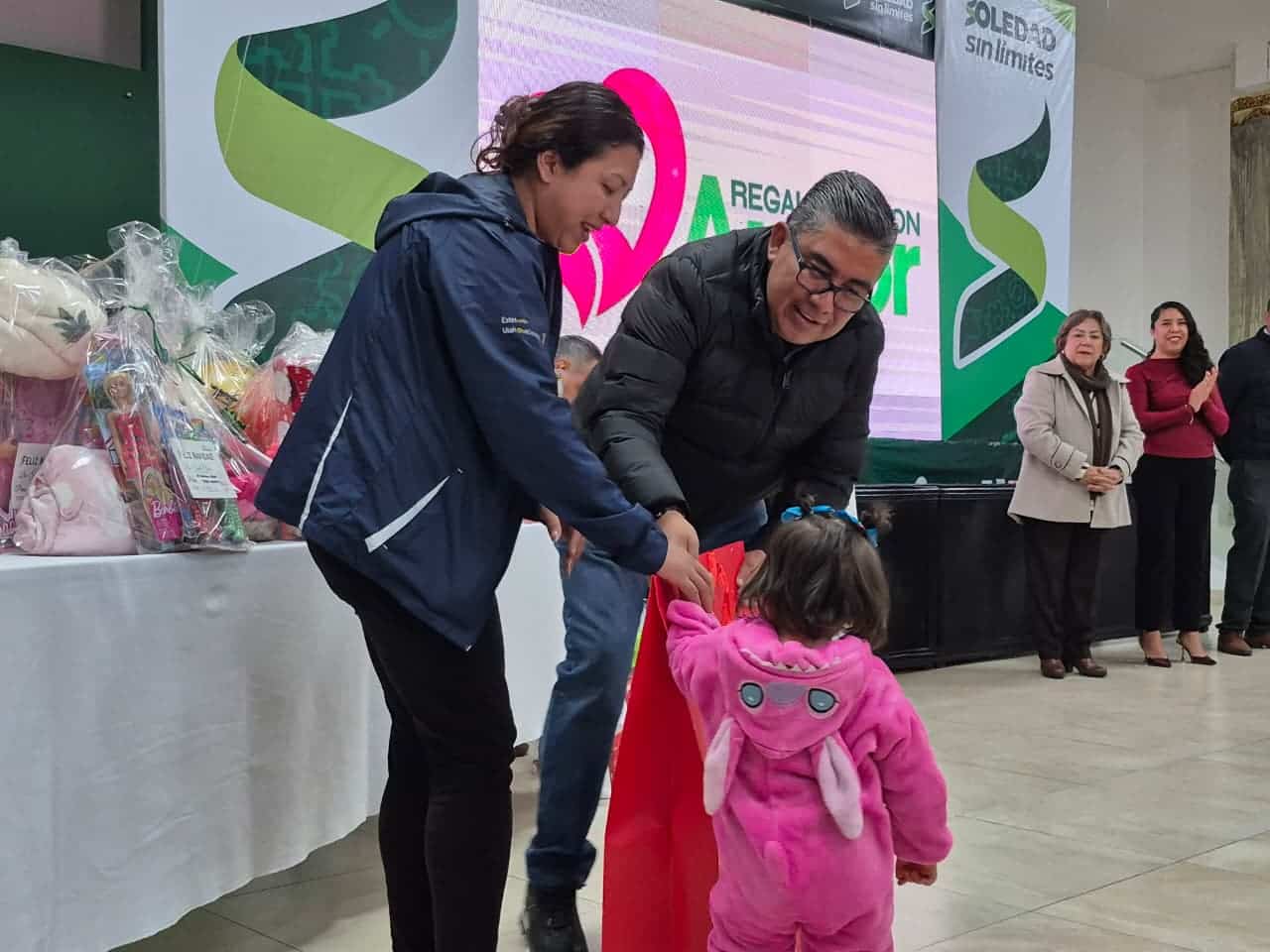 Por su parte, María del Pilar Cardona Reyna, presidenta del Sistema Municipal para el Desarrollo Integral de la Familia, subrayó el valor humano del programa y agradeció el respaldo institucional y social: “Estos programas tan bonitos deben continuar, porque apapachan a nuestros pequeños y acompañan a las mamás y papás que todos los días luchan por ellos, gracias a quienes hicieron posible ‘Regalando con Amor’; ver a nuestras niñas y niños felices es el mayor regalo”, afirmó, reiterando que el DIF de Soledad trabaja con cariño, escucha y cercanía para atender a las familias y a los sectores más vulnerables del municipio.