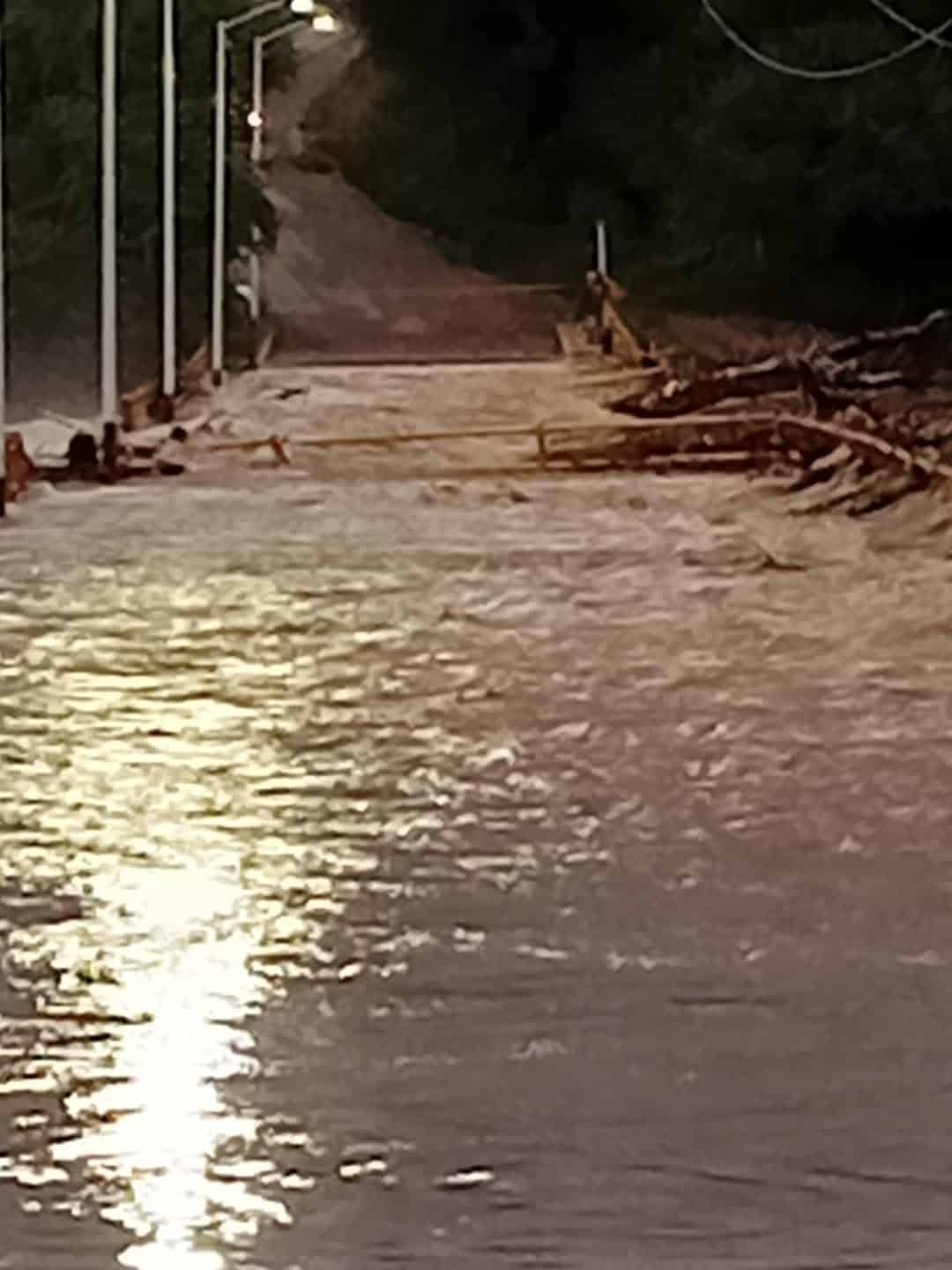 El viernes 10 de octubre, por la noche, se reportó a través de redes sociales que el agua del río destruyó las barras de contención del puente, esto provocó que la plataforma quedara por completo bajo el agua, residentes de la zona denuncian que la estructura presenta severos daños en los cimientos, por lo que podría colapsar, lo que representa un riesgo para todos los que transitan por este lugar.