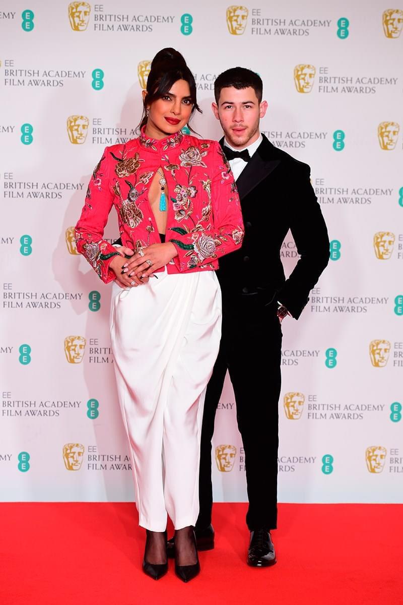 Priyanka Chopra, eligió un pantalón blanco, con una chaqueta borda de Pertegaz y una buena selección de joyas de Bulgari y su marido Nick Jonas, portó un esmoquin de Giorgio Armani.