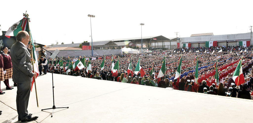 Ante más de 5 mil 200 niños y niñas de tercer grado de primaria, que tomaron protesta ante el lábaro patrio en marco de las festividades del Día de la Bandera, el Gobernador del Estado, Juan Manuel Carreras López, convocó a la sociedad a prevalecer en la unidad en torno a los valores de México.