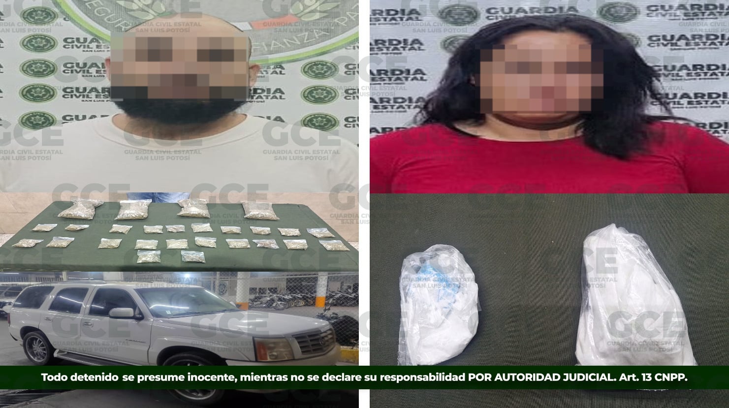 En acciones paralelas, la GCE realizó más detenciones por narcomenudeo en distintos puntos del estado. En la capital potosina, San Luis Potosí, fueron detenidos Fernando “N”, de 29 años, y Ricardo “N”, de 26, tras asegurarles 21 bolsas con marihuana. Ambos fueron identificados como principales distribuidores de sustancias ilícitas en el sector sur de la zona metropolitana y cuentan con antecedentes por presuntos delitos contra la salud.