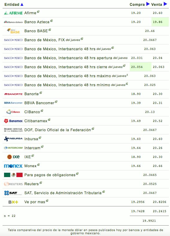 El tipo de cambio en ventanilla se encuentra en $19.39 a la venta en BBVA Bancomer, mientras que Banamex ofrece el dólar en $19.49 y Banorte $18.90