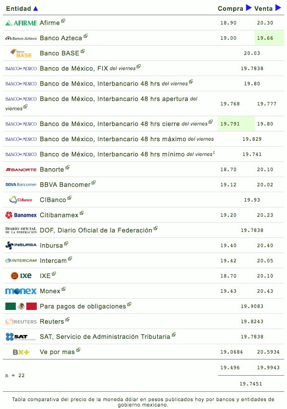 El tipo de cambio en ventanilla se encuentra en $19.12 a la venta en BBVA Bancomer, mientras que Banamex ofrece el dólar en $19.20 y Banorte $18.70