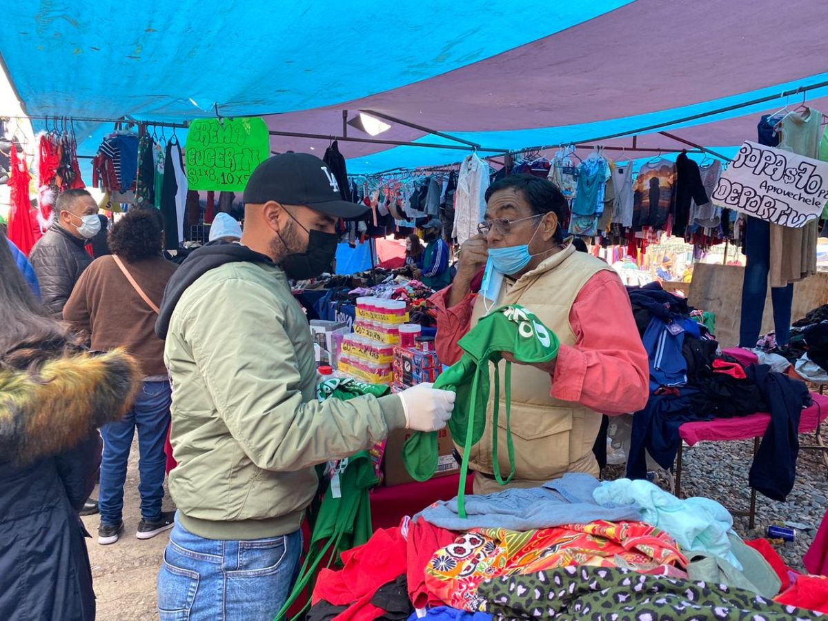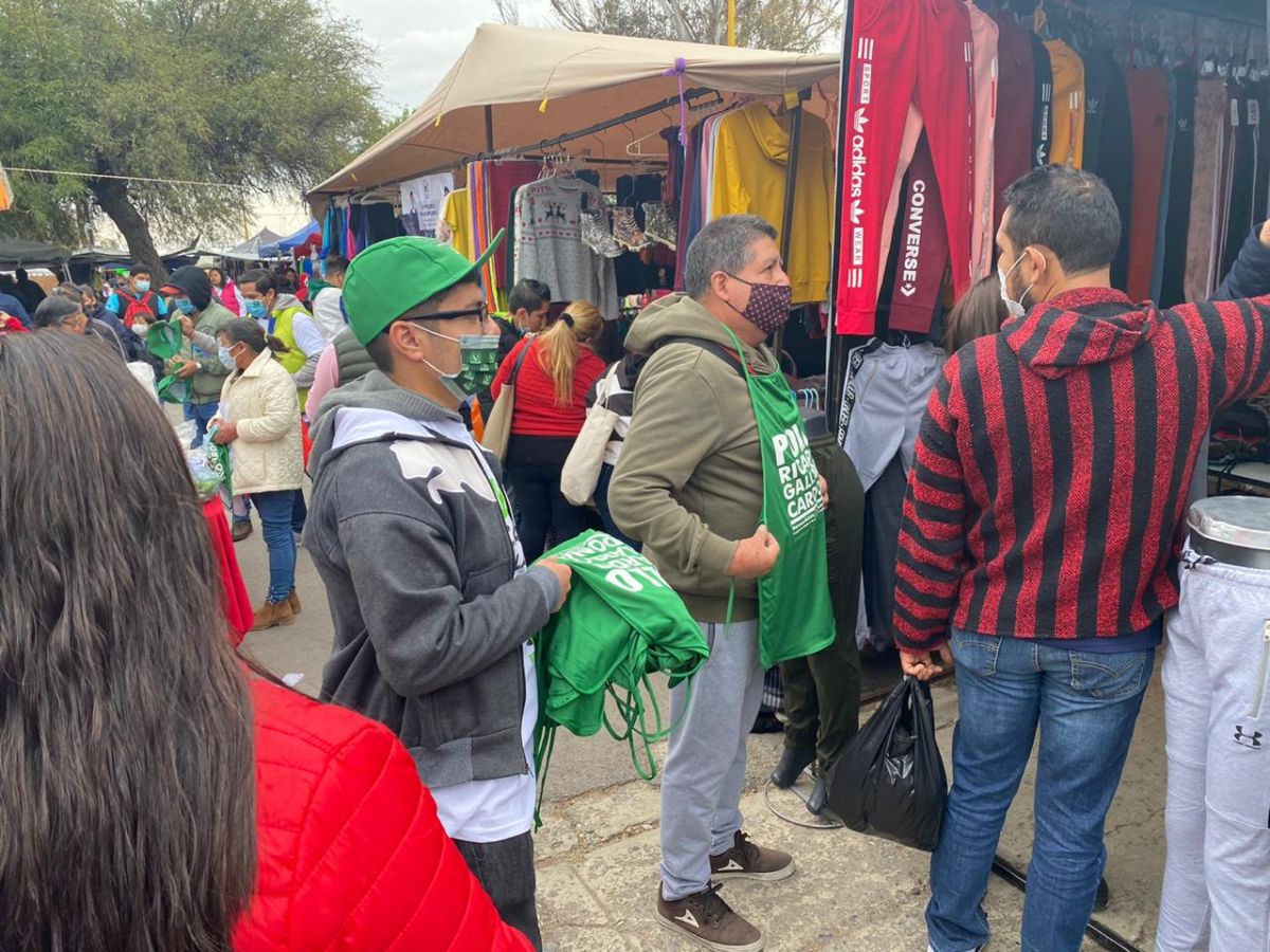 Desde muy temprana hora, seguidores y simpatizantes de El Pollo Gallardo recorrieron el tianguis repartiendo mandiles, mismos que fueron aceptados de buena gana por los comerciantes y algunas personas que transitaban por el lugar.