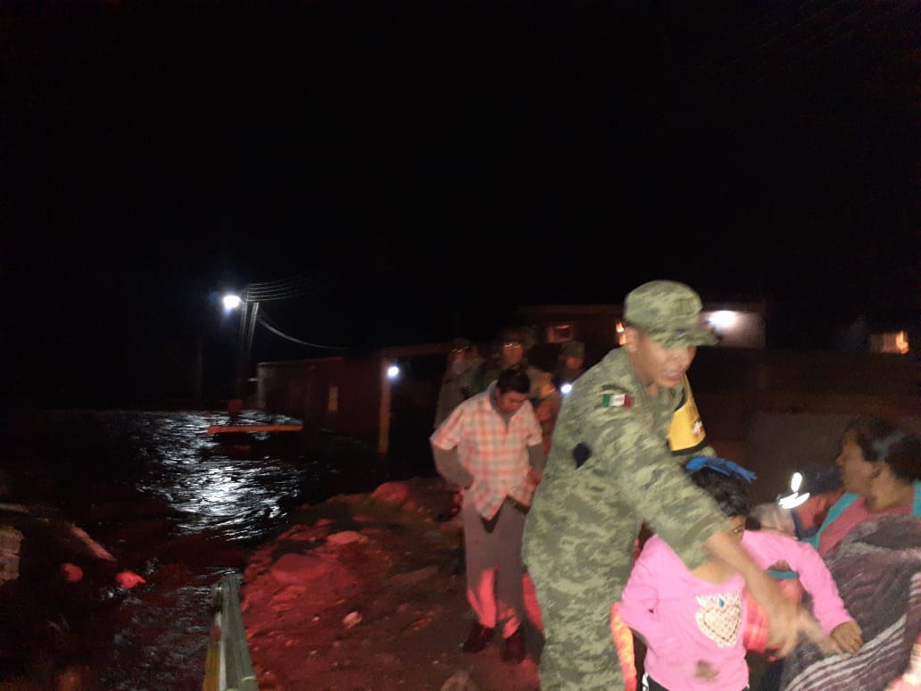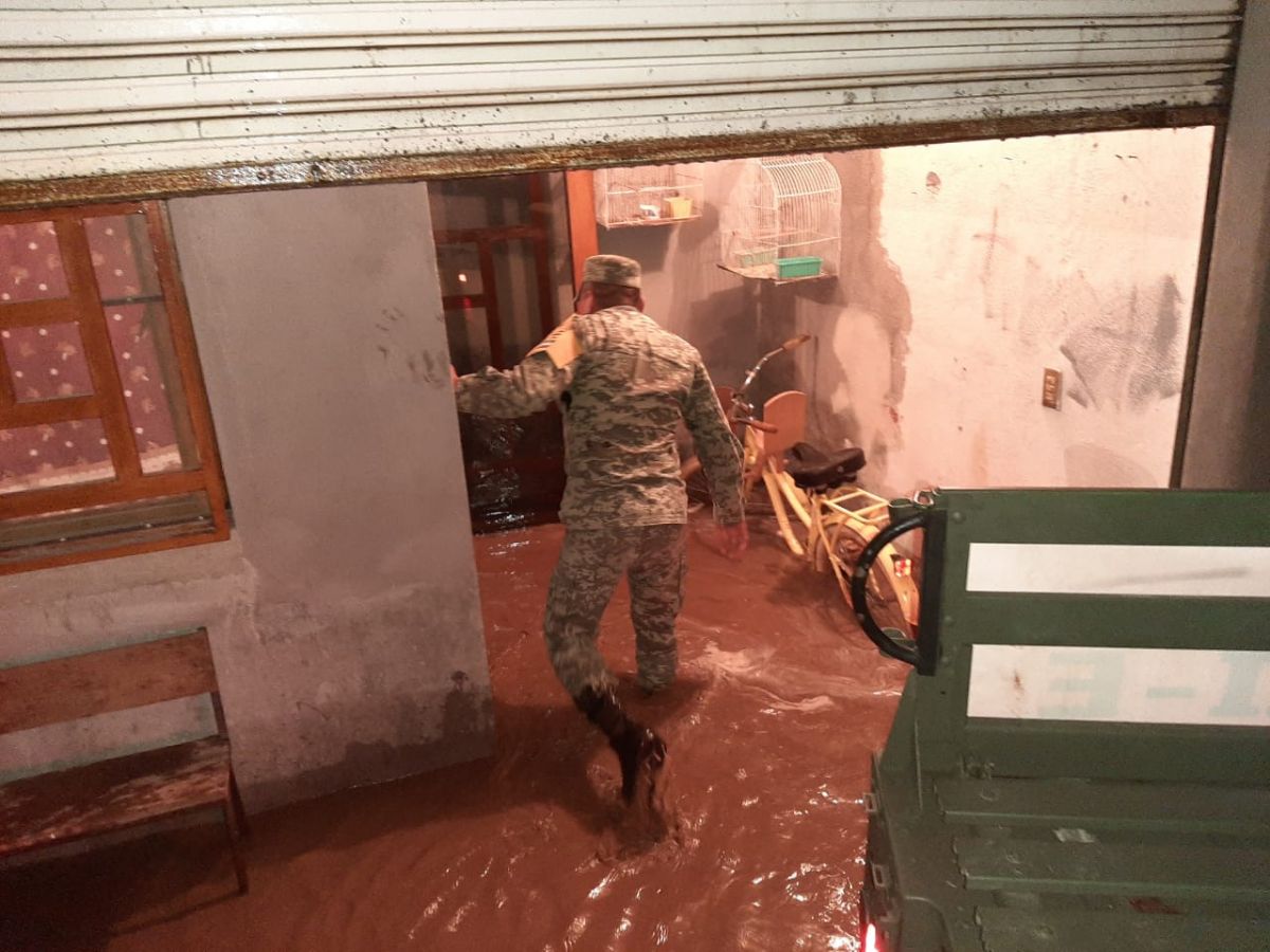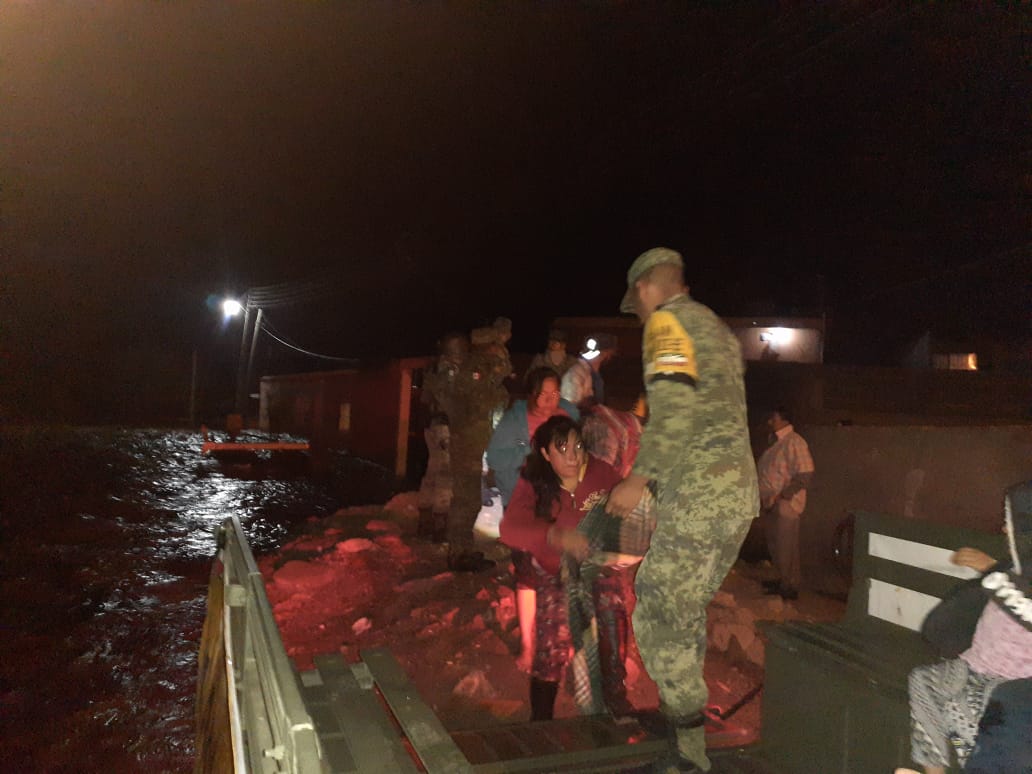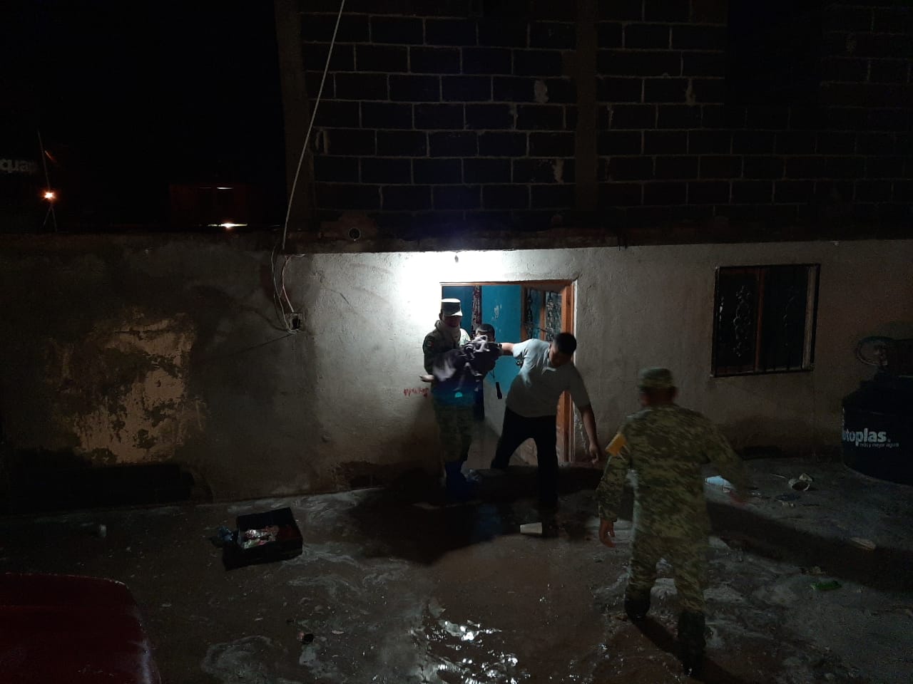 Con motivo de las fuertes lluvias registradas la madrugada de esta fecha, en el municipio de Salinas de Hidalgo, S.L.P., personal militar perteneciente al 40/o. Batallón de infantería, implementó el PLAN DN-III-E en la Colonia La Joya, en dónde se registraron afectaciones por las inundaciones en la mayoría de las viviendas.