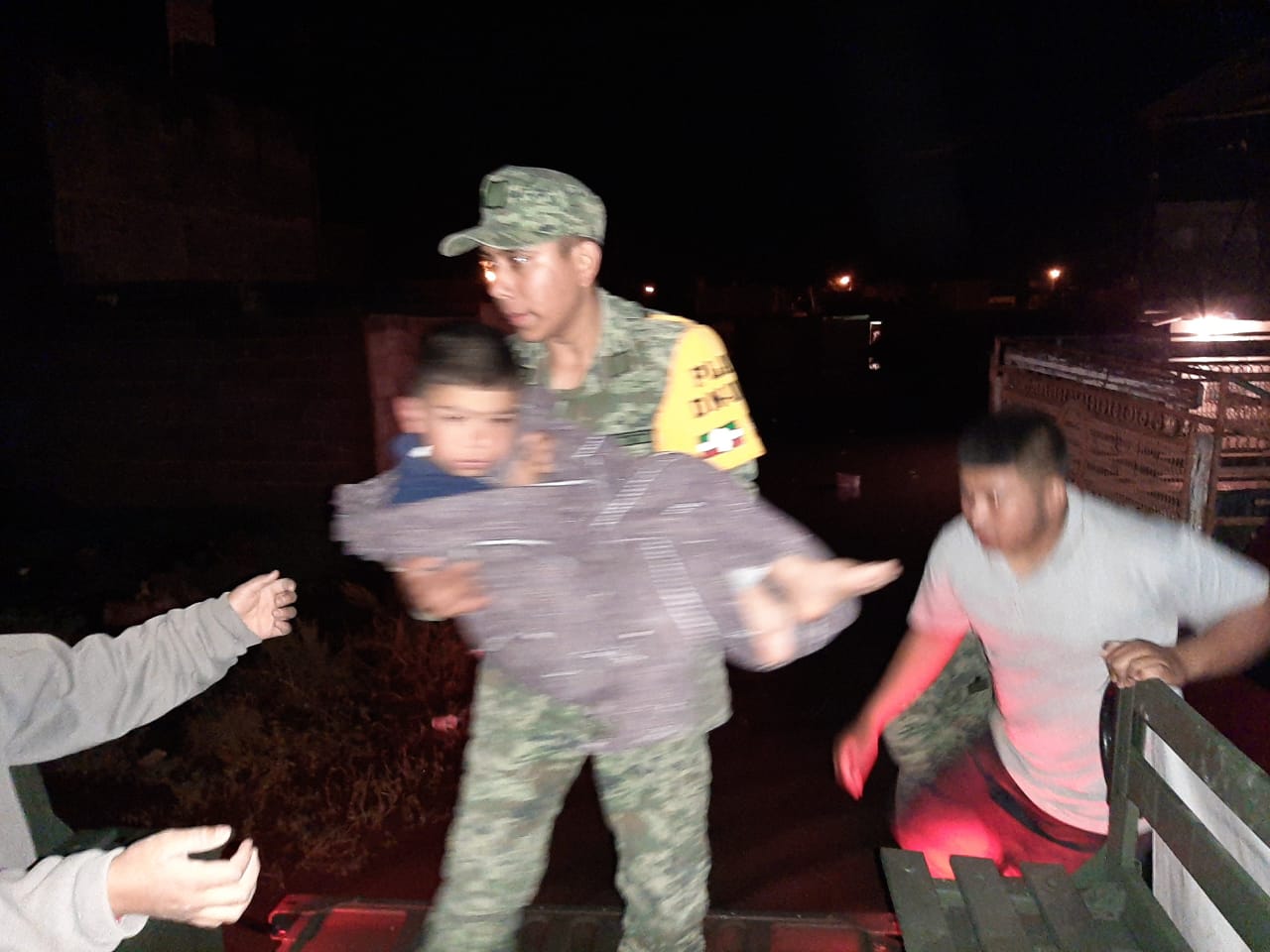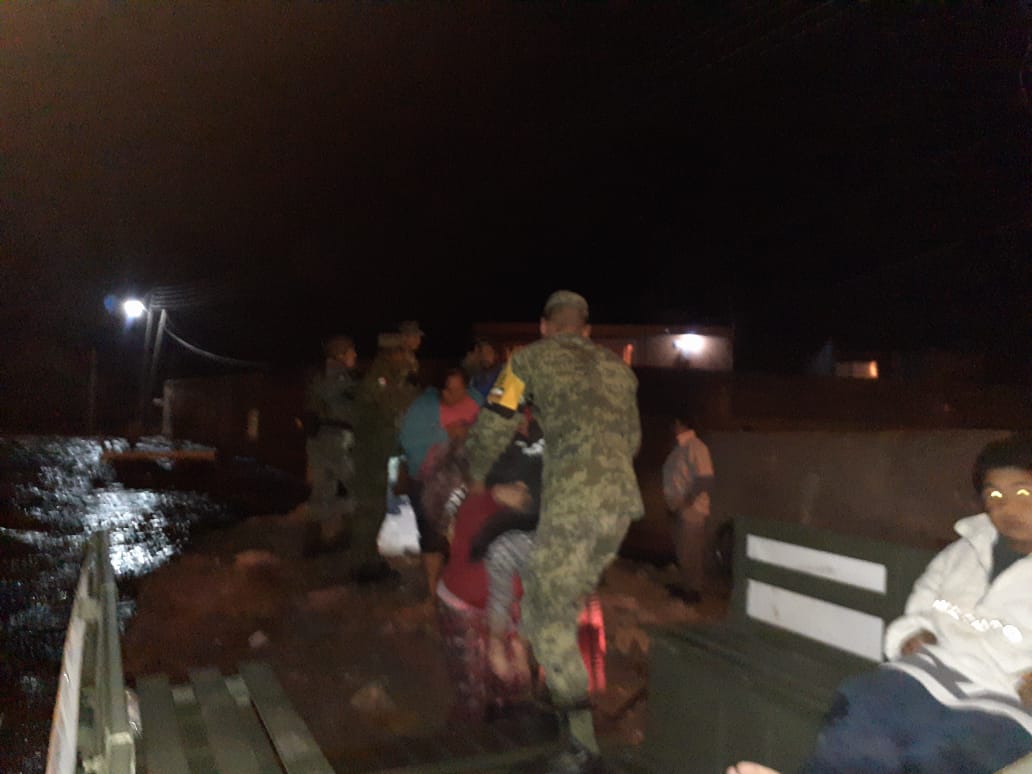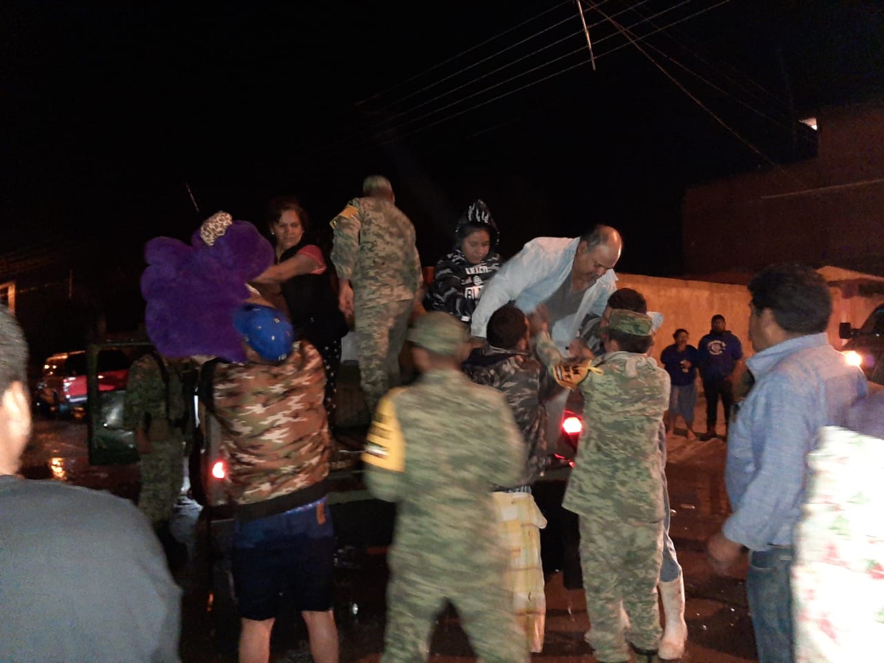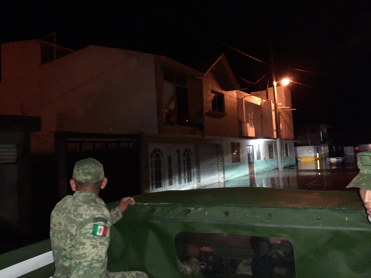 Con motivo de las fuertes lluvias registradas la madrugada de esta fecha, en el municipio de Salinas de Hidalgo, S.L.P., personal militar perteneciente al 40/o. Batallón de infantería, implementó el PLAN DN-III-E en la Colonia La Joya, en dónde se registraron afectaciones por las inundaciones en la mayoría de las viviendas.