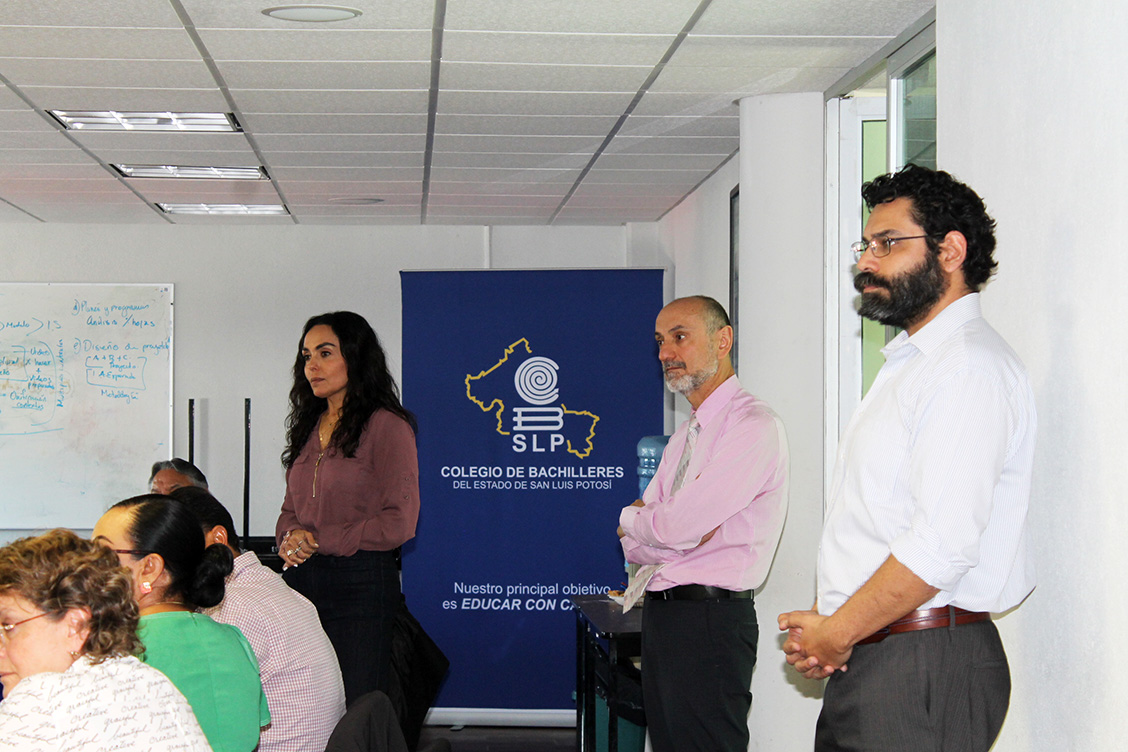 El Colegio de Bachilleres de San Luis Potosí impartió a jefes de materia y docentes de la institución un curso taller de formación para el diseño, desarrollo y evaluación de cursos en modalidad semi presencial, como parte de la actualización que reciben los profesores del subsistema.