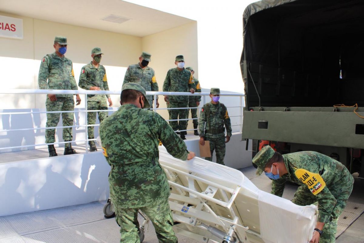 Elementos de la Secretaría de la Defensa Nacional, a través de la doceava Zona Militar, recibieron 21 camas para hospitalización para el Hospital Central Dr. Ignacio Morones Prieto. Solo quedan pendientes 29 de las 50 que proporcionará la federación.