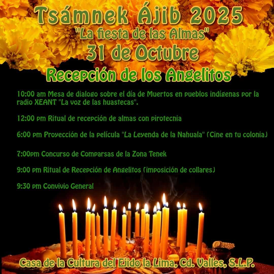 A través de música, ofrendas, danza y rituales sagrados, el pueblo tének honra la memoria de quienes ya partieron y abre sus puertas a toda la población para compartir esta herencia cultural única. La sede será la Casa de la Cultura del Ejido La Lima, donde se desarrollarán diversas actividades que combinan espiritualidad, tradición, arte y convivencia comunitaria.