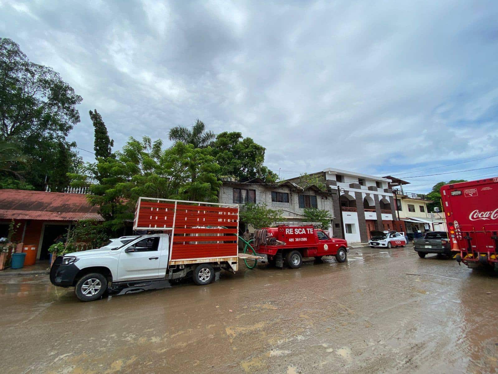 En Tamazunchale, otro de los municipios más impactados, este domingo continuaron las labores para ayudar a los habitantes de las comunidades de Texojol y el barrio Río Claro, donde el nivel del río dejó calles intransitables y viviendas rodeadas de agua. Con apoyo de maquinaria pesada, cuerdas y una cadena humana, personal de los tres niveles de gobierno logró cruzar los cauces para entregar víveres, medicamentos y agua purificada a las familias que permanecen aisladas, ya que el acceso por vía terrestre es prácticamente imposible.