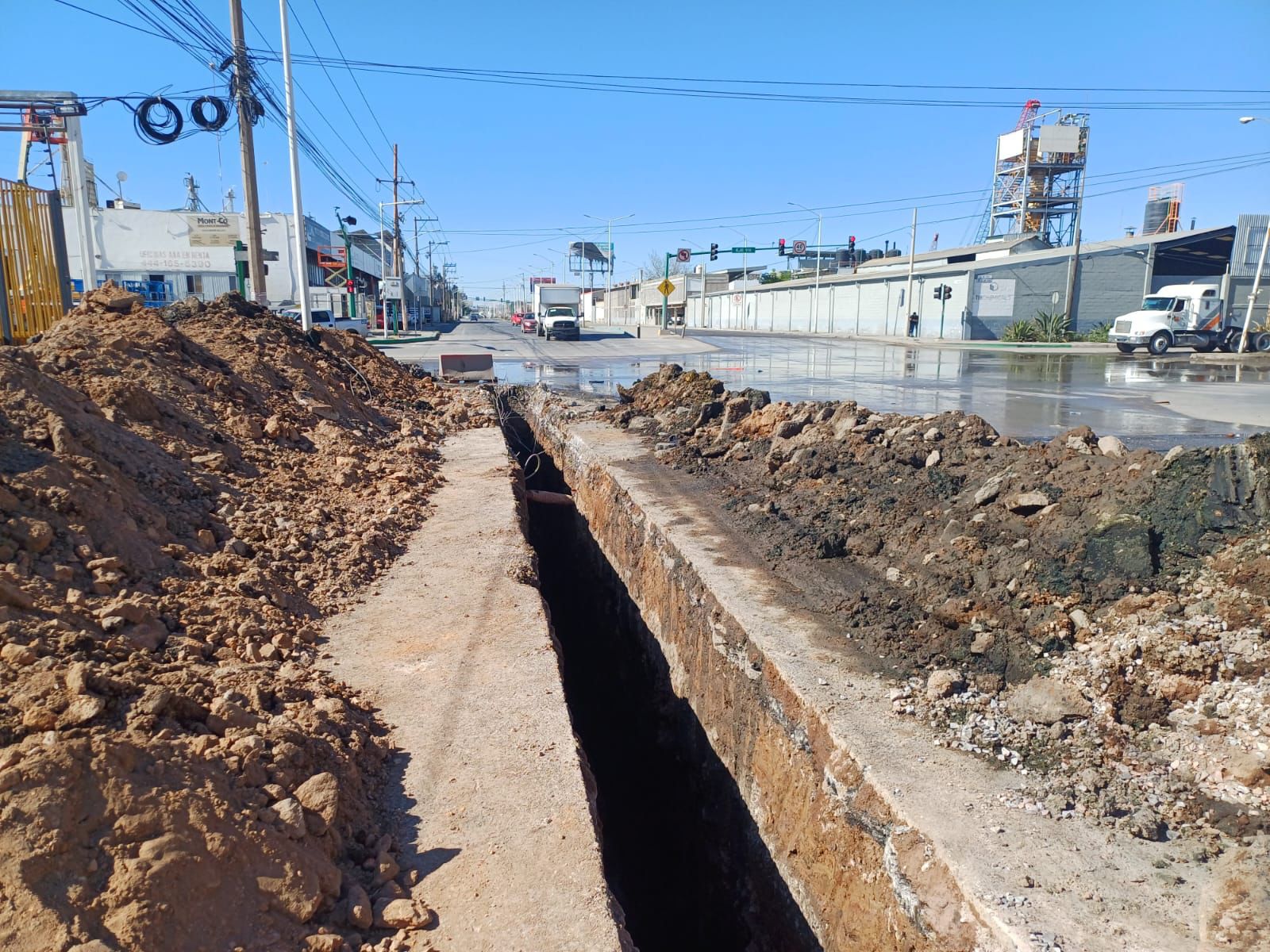 SLP.– INTERAPAS mantiene avances en los trabajos de rehabilitación del subcolector sanitario sobre avenida Industrias.