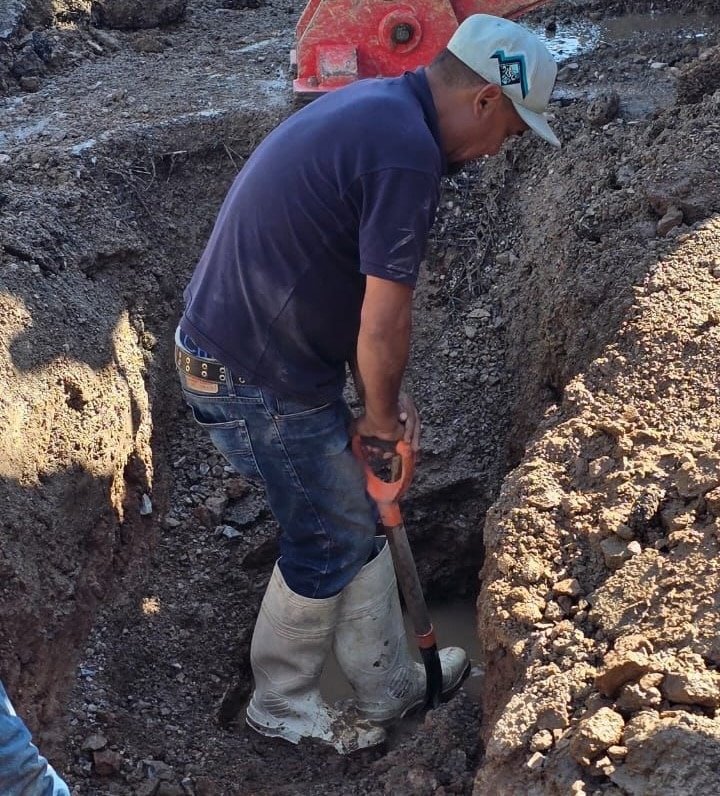 Para ubicar el origen de la falla, las cuadrillas realizaron sondeos, confirmando que se trataba de una fuga interna proveniente de una toma domiciliaria. Posteriormente, se llevó a cabo el cambio de la tubería para eliminar el problema.