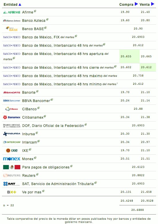 El tipo de cambio en ventanilla se encuentra en $20.24 a la venta en BBVA Bancomer, mientras que Banamex ofrece el dólar en $20.34 y Banorte $19.70