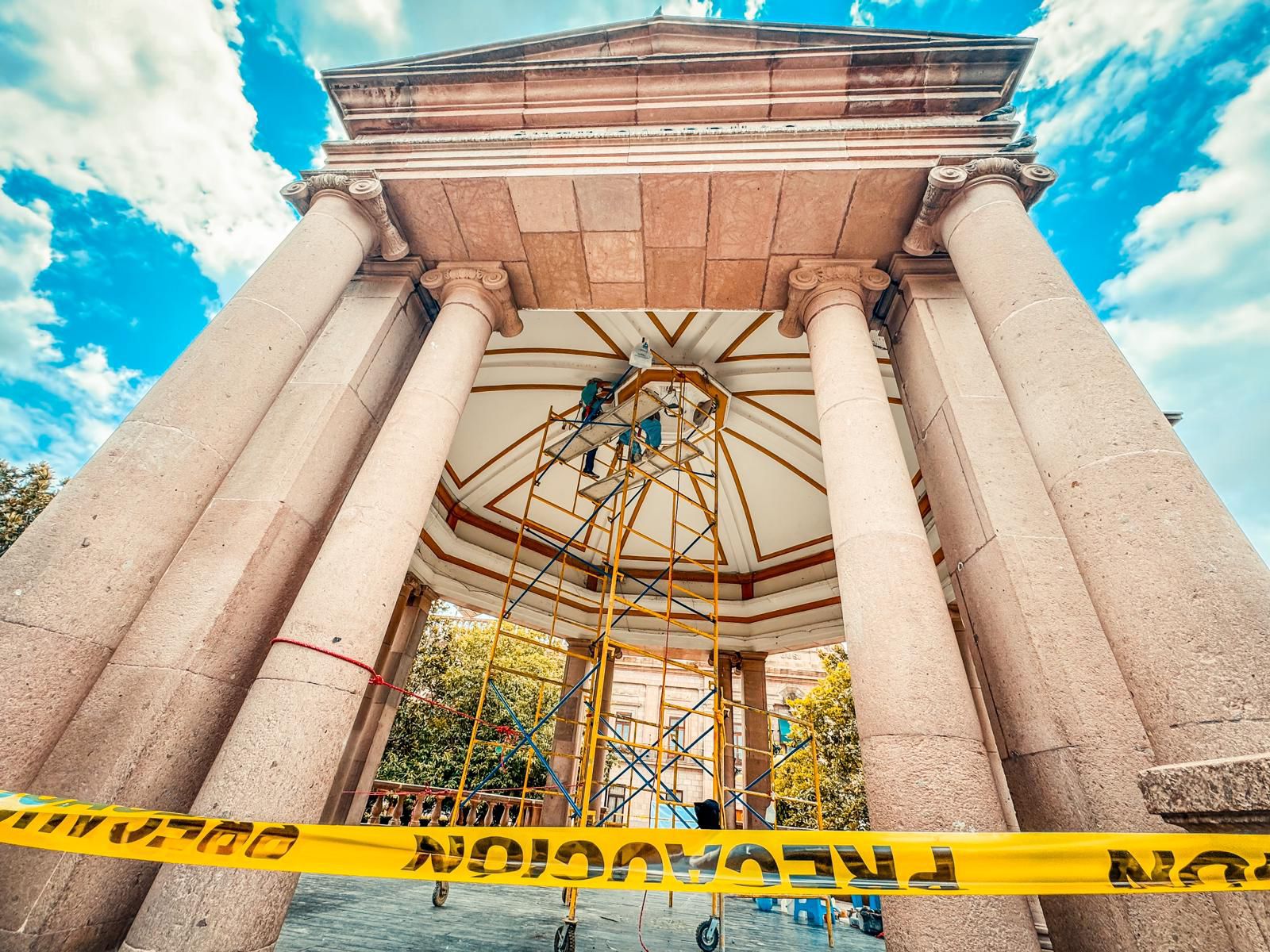 Con la finalidad de conservar en las mejores condiciones el kiosco de la Plaza de Armas, que es uno de los monumentos emblemáticos de la ciudad, la Unidad de Gestión del Centro Histórico puso en marcha una serie de acciones para la rehabilitación de las piezas de cantera que han sufrido algún deterioro y para garantizar un espacio limpio y seguro para los visitantes.