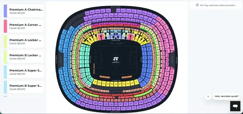 En la página se muestra que entradas van de 500 a 9,000 pesos mexicanos, dependiendo de la zona: