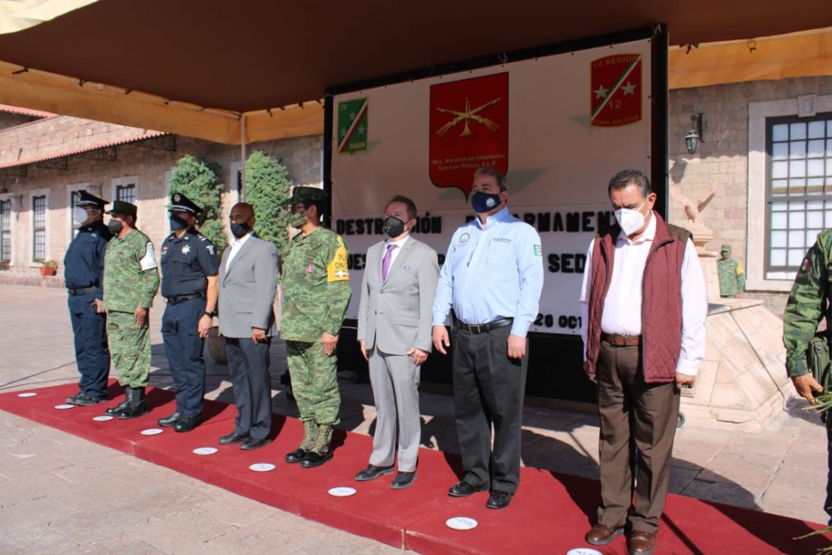 El acto fue presidido por el General de Brigada Diplomado de Estado Mayor Guzmar Ángel González Castillo, Comandante de la 12/a. Zona Militar, acompañado del Secretario General de Gobierno, Fiscal General de Justicia de San Luis Potosí, Delegado estatal de la Fiscalía General de la República, Secretario de Seguridad Pública Municipal y del Coordinador Estatal de la Guardia Nacional.