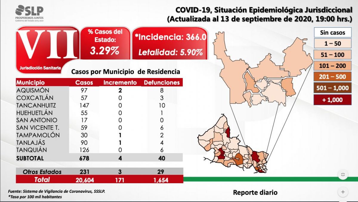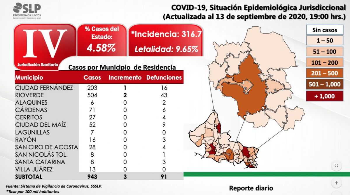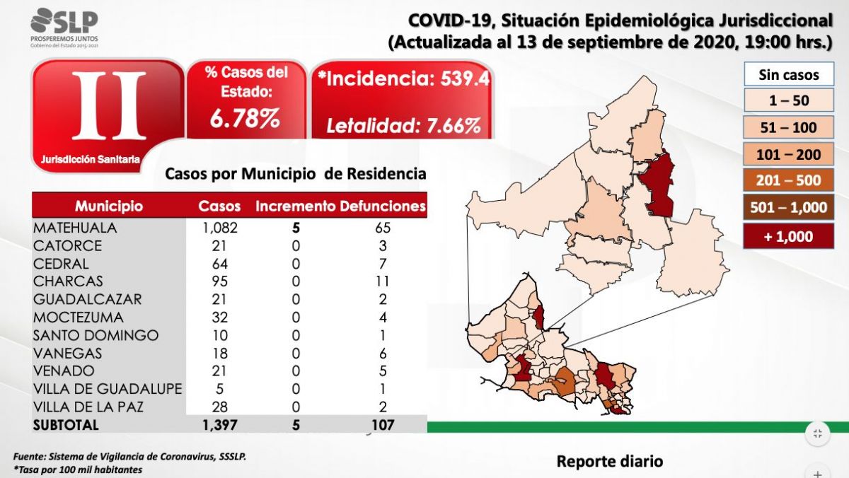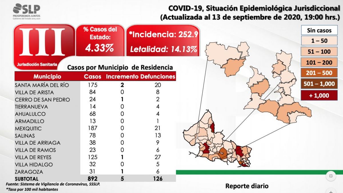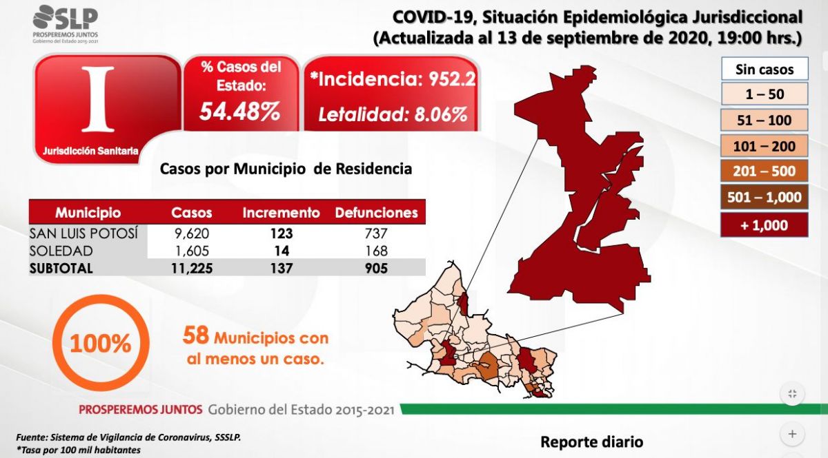El Comité de Salud de SLP informa sobre el avance de la pandemia en el estado. En las últimas 24 horas confirmaron 171 nuevos infectados y 24 defunciones por Covid-19. La tasa de letalidad incrementa a 8.03% por cada 100 enfermos.