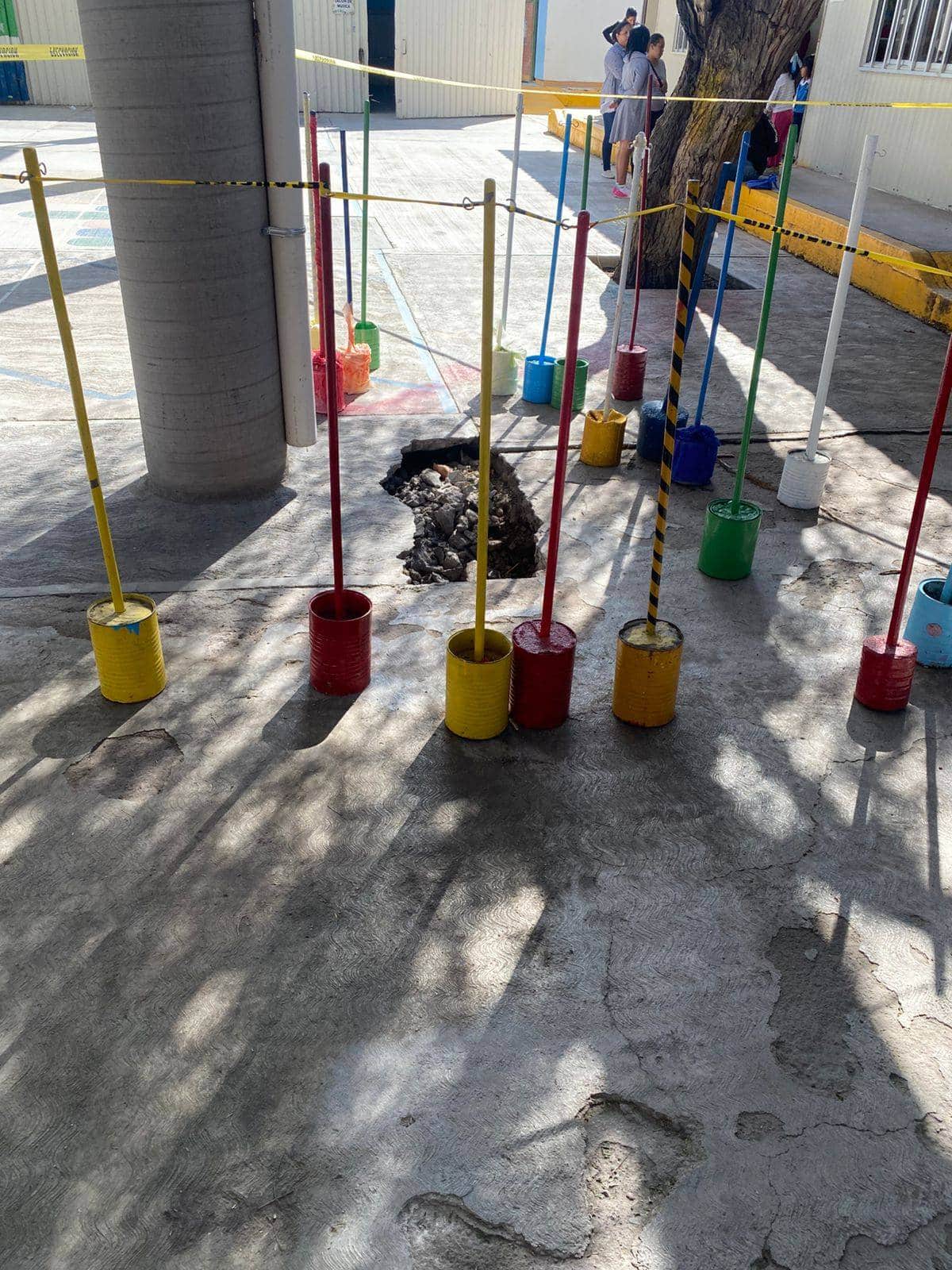 Los padres de familia señalan que ante la aparición de grietas y hundimientos cercanos a pilares de la escuela en días pasados, la directora del plantel determinó únicamente suspender las clases presenciales, con tareas que son enviadas a los pequeños a través de sus respectivos tutores. Lo grave de esta situación es que ni siquiera se había buscado atender el problema del socavón.