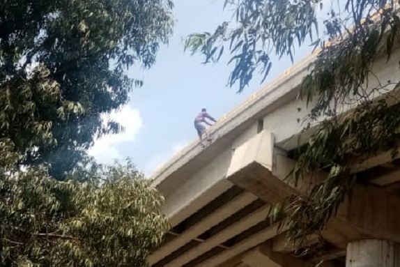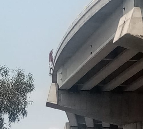 Fue poco después del mediodía cuando algunos automovilistas se sorprendieron al ver a un hombre caminar por la orilla de la superficie de rodamiento de uno de los brazos del Distribuidor Juárez, luego, al llegar a la cima se pasó del otro lado del muro y el tubo metálico de protección. Amenazaba con lanzarse al vacío.