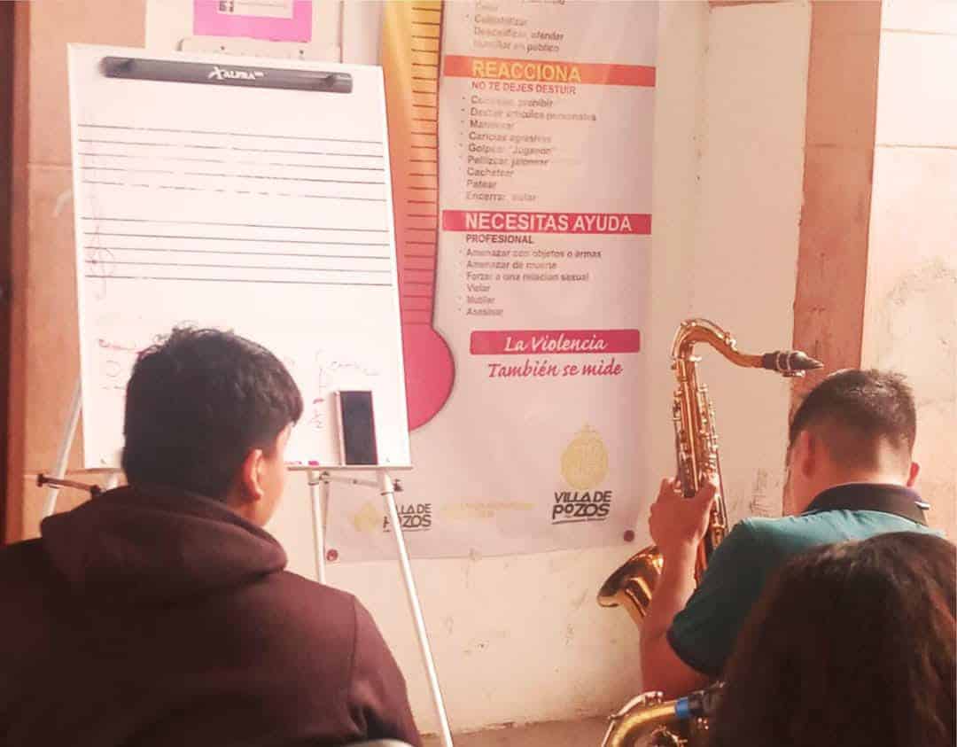 El Gobierno de Villa de Pozos, a través de la Dirección de Cultura, inició un taller de saxofón con el propósito de fomentar el desarrollo artístico y musical entre la localidad, diseñado para que los participantes no solo aprendan técnicas de ejecución e interpretación, sino también fortalezcan su capacidad de expresión a través de la música.