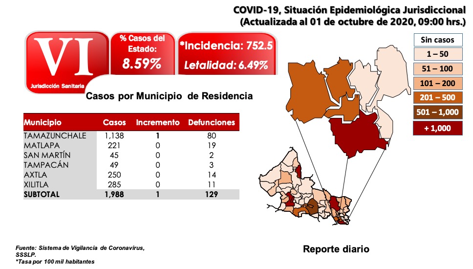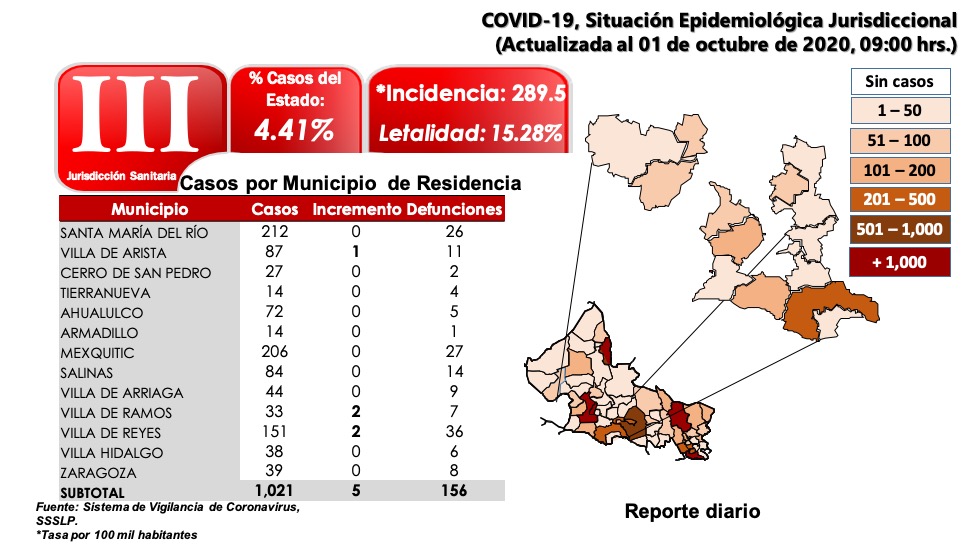 El Comité de Salud de SLP informa sobre el avance de la pandemia Covid-19 en el estado. El número de contagios continúa a la baja, en las últimas dos semanas 15 municipios de la entidad no han registrado casos nuevos.