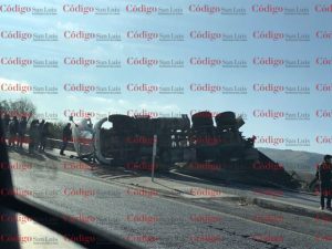 Hoy por la mañana, un tráiler con doble remolque que llevaba mercancía de la empresa lechera Lala se volcó en la carretera San Luis Potosí – Zacatecas. Ambas cajas resultaron con fuertes daños y como una se abrió, gran parte de la mercancía quedó expuesta por lo que comenzó la rapiña por parte de los habitantes de la comunidad El Rincón del Porvenir, en Mexquitic de Carmona.