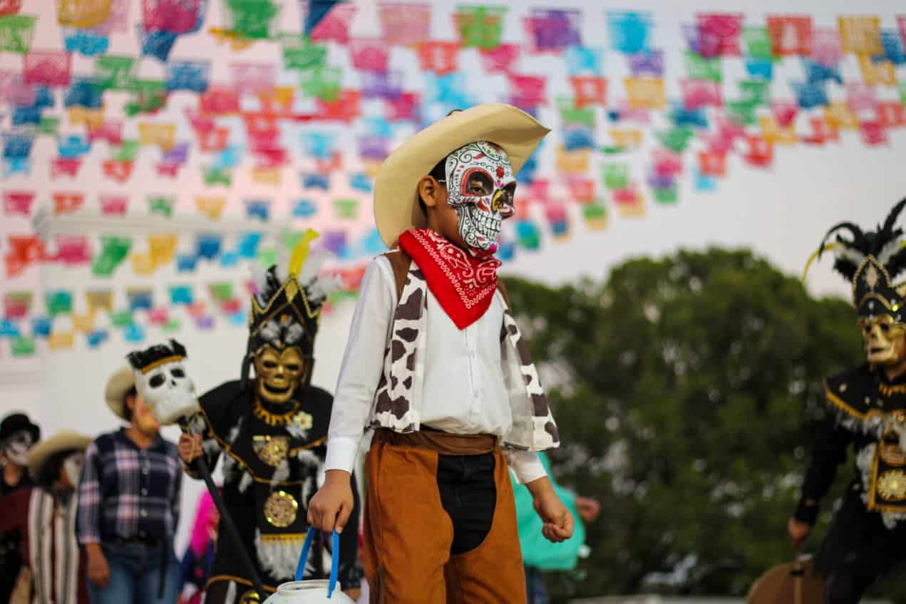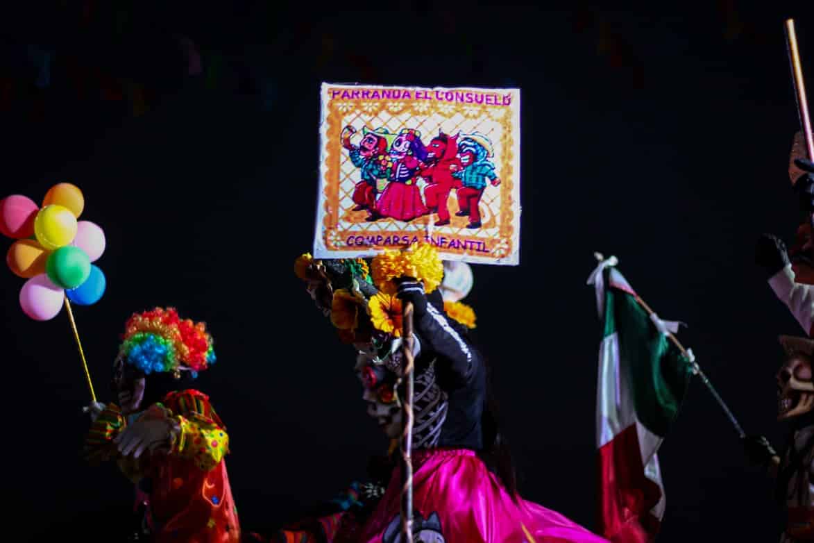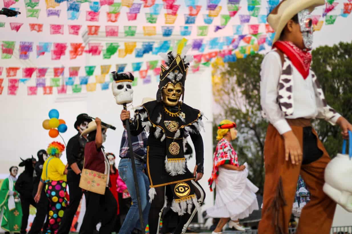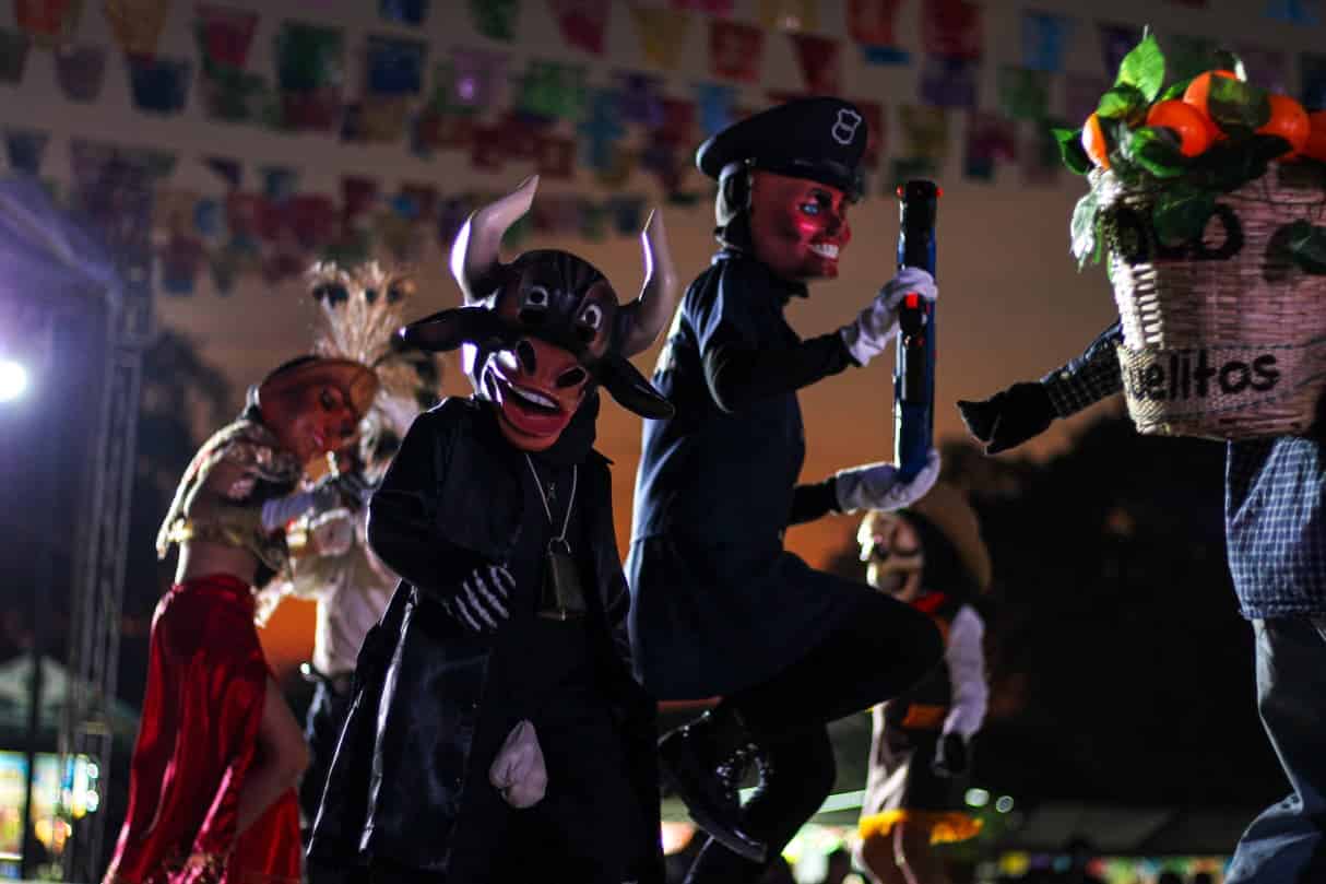 La jornada inició con la demostración de comparsas infantiles de huehues en los terrenos de la feria, donde la comparsa “El Consuelito” y la cuadrilla “Xantoleritos” de la escuela Lázaro Cárdenas hicieron vibrar la tarima al ritmo del violín y la jarana, interpretando los sones tradicionales que evocan el reencuentro entre los vivos y los que ya partieron.